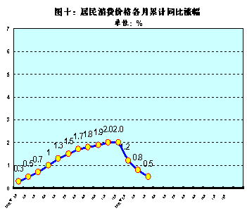 4.居民消费价格总水平累计比上年同期上涨0.5%,商品零售价格总水平累计比上年同期上涨1.5%。