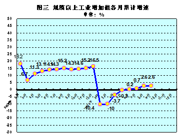 3.规模以上工业增加值(按可比价格计算)比上年同期增长2.6%。