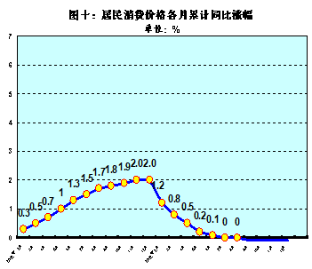 6.居民消费价格总水平比上年同期下降0.1%,商品零售价格总水平比上年同期上涨0.7%。