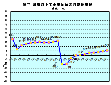 3.规模以上工业增加值(按可比价格计算)比上年同期增长5.3%。