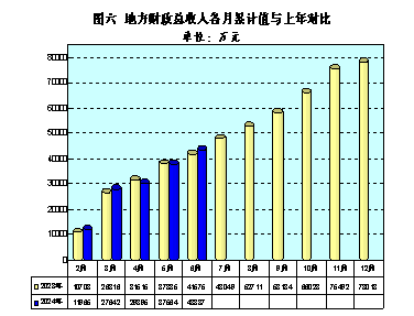 4.地方财政总收入累计实现43337万元,比上年同期增长4.2%。一般公共预算收入累计实现33221万元,比上年同期增长3.8%。一般公共预算支出完成152758万元,比上年同期增长0.2%。