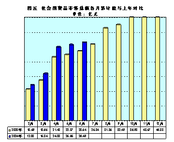 3.社会消费品零售总额实现264947万元,比上年同期增长12.6%。