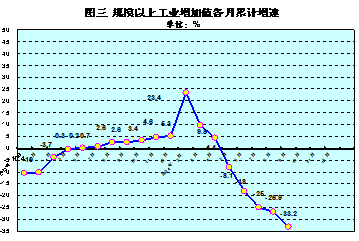 1.规模以上工业增加值(按可比价格计算)比上年同期下降33.2%。