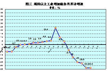 1.规模以上工业增加值(按可比价格计算)比上年同期下降33.4%。