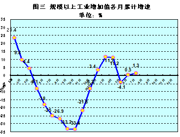 1.全县规模以上工业增加值按可比价格计算比上年同期增长1.3%。
