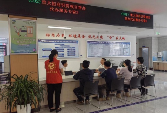 “一个专窗”全力帮办。在县政务服务中心三楼设立“重大招商引资项目帮办代办服务专窗”,建立“专窗吹哨,部门报到”服务机制。县政务服务中心重大招商引资项目帮办代办专窗工作人员接到县投资促进局交办的重大项目后,及时与投资企业签订《大姚县招商引资重大项目帮办代办服务委托协议》,并从县政务网上推送或者电话通知县级相关部门帮办代员到县政务服务中心帮办代办服务专窗领取任务单。县级相关部门在接到“专窗”指派任务电话后,分管领导或帮办代办员30分钟内到达县政务服务中心“专窗”领受任务,将本部门审批事项涉及的内容一次性告知项目单位,落实首办负责制。县级相关部门领受交办任务单后,按照服务承诺限时办结交办事项,将办理结果即时反馈到县政务服务中心帮办代办服务专窗,专窗帮办代办员以电话通知、书面送达、邮政寄递等方式及时将办理结果反馈给申请单位。专窗帮办代办员同时做好帮办代办各个环节资料收集整理归档工作。今年以来共完成帮办代办事项96件,企业办事获得感、满意度明显提升。